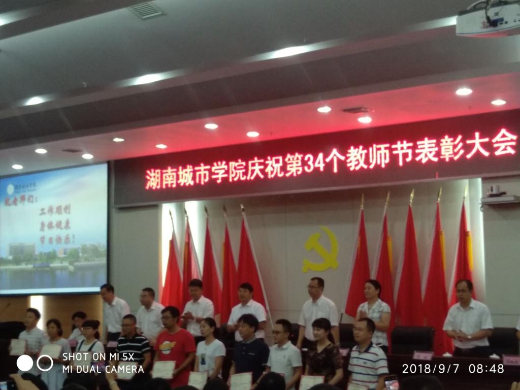 在本次表彰大会上,公司的“化工材料类专业老员工创新创业教育中心”获湖南省高校创新创业教育中心荣誉称号,受表彰的老师还有2017年的国家基金项目“构树BpMYB1基因调控镉胁迫响应的功能机理研究”立项的徐正刚老师和 “土壤镉污染治理的生态修复技术研究及应用”获湖南省科学技术进步奖三等奖的董萌博士。贺国文博士获得beet365“优秀教师”荣誉称号。贺国文博士还作为获奖代表发言。