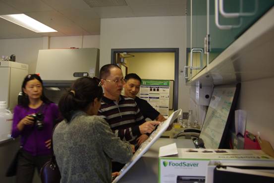 Tiffany Weir博士的陪同下,赵运林一行参观了Tiffany Weir博士茯砖茶功能成分研发实验室,随后Tiffany Weir博士汇报了他们在茯砖茶功能研发方面的最新进展,赵运林教授对他们在茯砖茶功能研发所取得的成绩予以了充分肯定,然后,双方就茯砖茶功能合作方向、合作方式等充分交换了意见