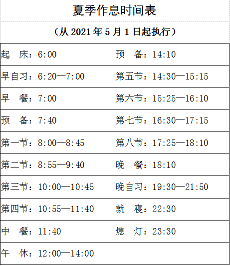 附件1.夏季作息时间表
