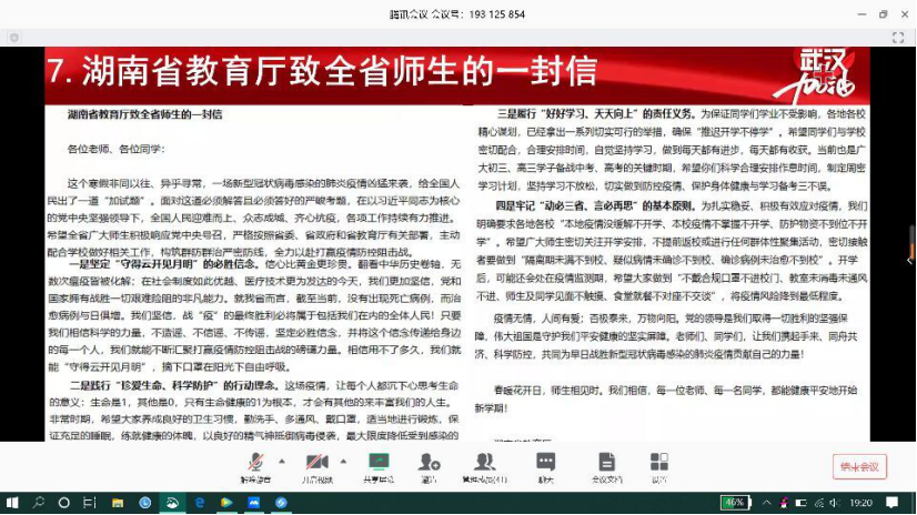 (beet365通讯员 陈亚洁) 新年伊始,一场突如其来的疫情延迟了开学,而这也让3月份的政治学习以一种别样的方式展开。为了让同学们更加深刻地认识疫情,向我们疫情期间所有的“逆行者”英雄学习,并认真上好老师们开展的各类线上理论课程,也为了让大家能更加有条不紊地应对疫情,beet365团委组织部于2020年3月22日在腾讯会议APP上开展了主题为“众志成城,共抗疫情”的线上政治学习。本次学习由各班团支书组织进行,beet365大一大二大三在校员工参与。