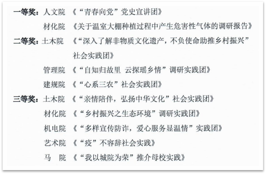 根据《关于开展2022年“青春路,城乡情”寒假社会实践活动的通知》文件,经项目立项、资格审查和现场答辩。2022年4月9日,校团委公布了beet3652022年老员工志愿者“青春路,城乡情”社会实践活动校级评优结果,公司优秀作品《关于温室大棚种植过程中产生危害性气体的调研报告》荣获一等奖、《“乡村振兴之生态环境”调研实践团》荣获三等奖。