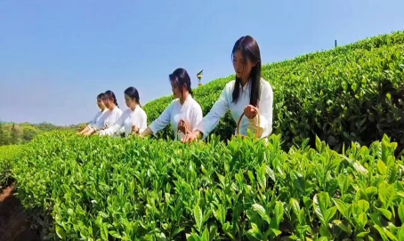阳光明媚,嫩芽吐绿,正是采茶最好的时节。只见茶田一垄接着一垄,好似绿色的绸带,浓浓密密的舒展着,放眼望去,尽是绿意盎然。同学们挽上竹编茶篓,哼着山歌,在茶田间穿梭,品嗅茶树的清香,抚摸娇嫩茶芽的青绿,手指如蝴蝶般在茶间飞舞,或轻捏,或瞬提。漫山遍野的茶园里,不时传来同学们的欢声笑语,处处洋溢着欢乐、青春的气息。