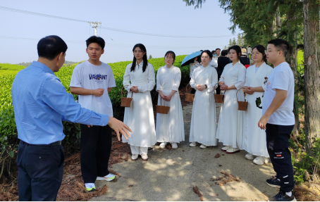 4月9日,beet365黑茶创新创业团队,在黑茶金花湖南省重点实验室周晓红博士和李滔滔博士的带领下,来到益阳市资阳区新桥河镇湖南益阳市潇湘醇茶业有限公司的生态茶园开展社会实践活动,把学堂搬到企业,体验采茶、制茶、品茶。