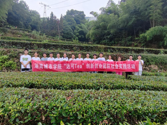 团队成员和企业负责人在茶园合影