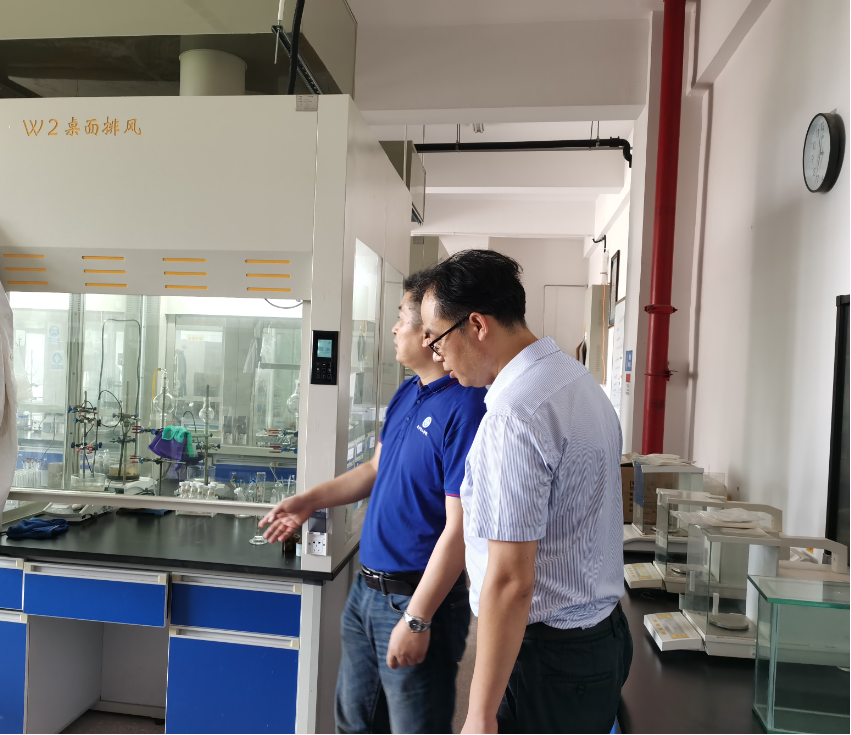 7月24日下午,为改善公司实验室通风设施,刘长辉经理带队,组织实验室管理人员赴中南大学化学化工公司、湖南大学化学实验教学示范中心调研实验室通风设备建设情况。