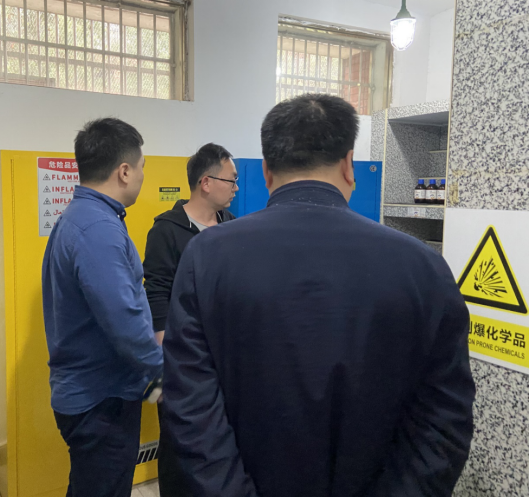2023年3月8日上午,为了加强危险化学品安全监管工作,积极做好危险化学品反恐怖防范工作,有效防范和遏制安全事故的发生,湖南省公安厅反恐大队来公司危险化学品库房进行安全防范工作检查。党委委员、副董事长袁志成、保卫处、beet365相关领导陪同检查。