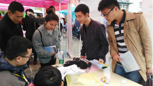 现场人潮涌动,各位志愿者们也都在坚守自己的岗位,帮助同学们找到企业所在位置,维持现场的秩序,并搭建帐篷等。毕业生们早早来到现场,了解企业信息,为寻找心仪的岗位做准备。大家都积极地同各企业负责人进行交流,全方位地了解市场信息,并通过对自己实际情况的分析,向适合自己的企业投出简历。有一位同学在填写平安保险意向书时对于自己理想工资表示犹豫,他们负责人说:“你填写的数额则代表了你的价值,是你对自己的价值的认知”。每个人能力不同,适合自己的才是最好的。对于化环院的同学来说,广东金甲化工、湖南中财化学建材有限公司等企业成为了首选,来自化学工程与工艺、环境工程、高分子材料和生物工程专业的员工也都找到了自己理想的公司,应聘者也都趋向于大公司,小企业则略显冷清。应聘过程中,除了个人的外在形象,学分绩点也成了各企业关注的焦点,因为这也是员工综合能力的体现。本次供需见面会趋向于高层次的用人单位、多样性的地域分布,为2016届毕业生提供了充足、高质量的就业机会。