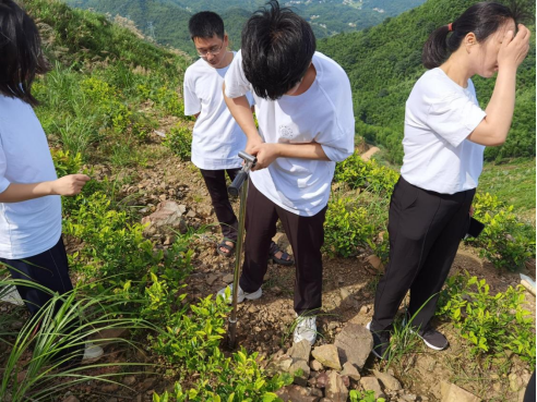 在碧云峰有机茶园中,茶研科普团队帮助茶农分析茶园管理对茶叶长势的影响,采集茶叶样本、生长环境土壤样本,为茶园测土配做准备,期待来年这片有机茶园生机昂然,有好的收成。