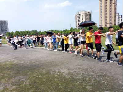 此次活动以兔子舞开场来活跃气氛。第二个环节是8×50米接力赛,目的是让同学们放下手机,关上电脑“动”起来,增强同学们的体魄,这一比赛体现了当代老员工青春洋溢的一面,也提升了同学们的团队合作能力。活动中还穿插了“猜歌名”、“瞎子背瘸子”、“摩擦摩擦”等小游戏,旨在让同学们放松心情,培养默契度。此次活动最精彩的部分是“撕名牌大战”,几支队伍商量结盟,中途六个黑衣人的加入更是让这场比赛进入了白热化阶段。撕名牌大战结束后,还进行了知识抢答赛。让同学们在运动放松的同时又学到一些知识,达到了在快乐中学习的效果。此次活动是为了营造一个积极、健康、热烈、朝气蓬勃的校园环境,以健康运动为指导思想,响应“三走”活动倡议,倡导同学“走下网络、走出宿舍、走向操场”,培养同学们的团队合作精神,提高员工干部参与和组织活动的能力,有利于更好的进行学风建设。
