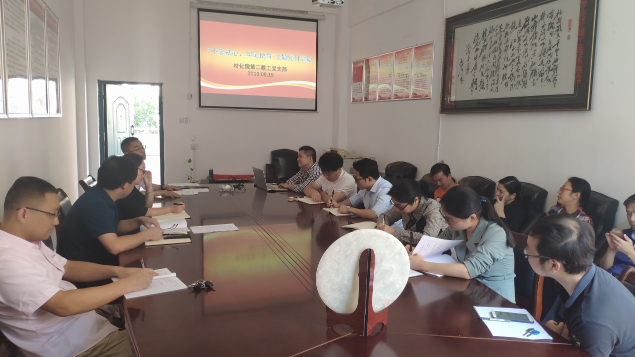 2019年9月19日,beet365教工第二党支部在化工楼312开展主题党日活动。党支部书记张劲主持。