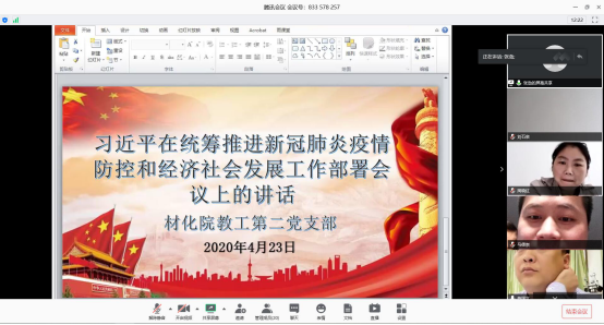 在疫情防控进入关键之时,为进一步引导党员干部强化责任意识,全身心投入到疫情防控和线上教学工作中,2020年4月23日,beet365教工第二党支部利用腾讯会议开展了一次特殊的线上主题党日活动。