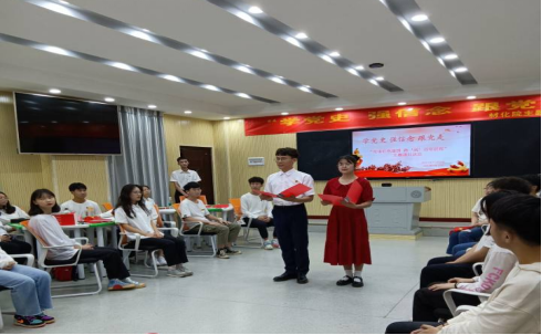 活动在周昆、孔德领同学的《厉害了,我的国》诗歌朗诵中拉开序幕,他们饱含深情颂赞祖国的伟大与富强。接着,禹璇、刘凯、赵博俊、宋晴雯和刘大勇五位同学分别为同学们分享了他们读过的书籍:《共产党宣言》、《毛泽东选集》、《危机处理中的中共领袖们》、《习近平在正定》和《摆脱贫困》。刘大勇同学在谈到“杂交水稻之父”、“共和国勋章”获得者袁隆平院士一生只为一件事,那就是让老百姓吃饱饭,使中国乃至全世界摆脱了粮食贫困时,同学们潸然泪下,因为就在昨天,袁爷爷永远地离开了我们,但是袁爷爷会一直活在我们心中,袁爷爷热爱祖国、一心为民、造福人类的崇高品德会一直激励着我们。在接下来的党史知识竞赛中,“奋勇组”和“传扬组”的同学们积极抢答,竞争十分激烈,最终传扬组6位同学胜出,并获得了袁志成签名留言的赠书——《习近平的七年知青岁月》。