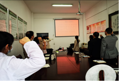 首先,支部党员夏莉同志过政治生日,汇报了思想,并带领全体同志重温了入党誓词。