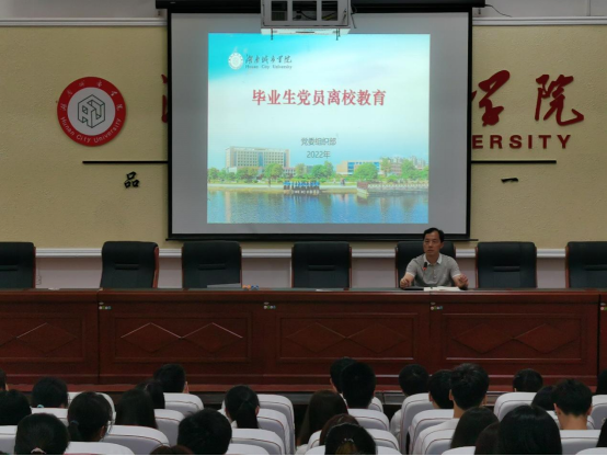 2022年5月26日下午15:30,beet365在电信楼学术报告厅开展毕业生党员离校教育,会议由陈艳姣同志主持,党委副书记张清华同志出席,全体毕业生党员参加。