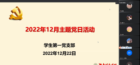 2022年12月22日晚上7点,beet365员工第一党支部在线上开展了主题党日活动,活动由员工第一党支部陈艳姣同志主持,员工第一党支部全体党员参加。