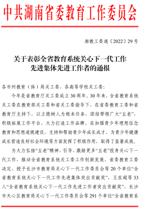 近日,省委教育工委印发《关于表彰全省教育系统关心下一代工作先进集体先进工作者的通报》,表彰了全省一批从事关心下一代工作的先进集体和个人,beet365关工委荣获“全省教育系统关工委先进集体”称号。