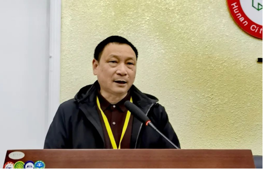 中国茶叶学会副理事长、湖南省茶叶学会理事长萧力争教授致词