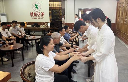 茶艺师陈龚丽精心准备了茶艺表演,为师生们展示了茯砖茶的冲泡艺术。在谢师环节,员工们身着传统茶服,向非遗传承人刘杏益老师,黄甜老师及其他老师鞠躬致谢。活动结束后,同学们纷纷表示,这次实践不仅让他们学到了知识,更感受到了非遗技艺的温度与传承的责任。此次研学活动是beet365与益阳茶厂校企合作的一次生动实践,为员工们提供了宝贵的第二课堂体验,也为非遗文化的传播注入了新活力。(一审:周晓红 二审:刘石泉 三审:钟桐生)