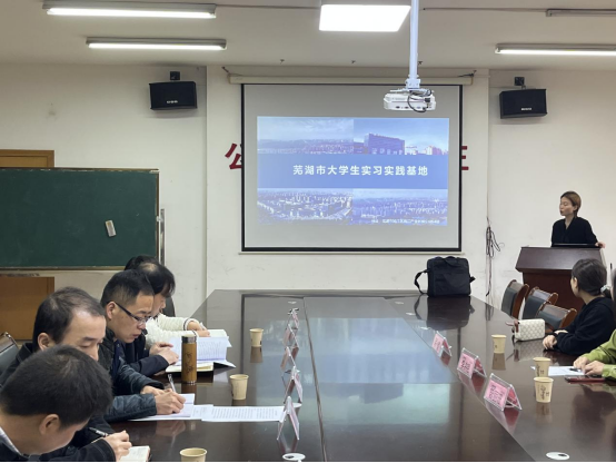 座谈会上,李洪艳主任从芜湖市产业概况、政府人才扶持政策和校地合作案例等方面,介绍了基地情况和重点服务内容,并表示希望以老员工实习实践为抓手,联合企业、政府、高校、员工,实现“五位一体”总体布局,畅通人才资源库和产教融合路径,推动校企合作、实习实践就业协同育人。